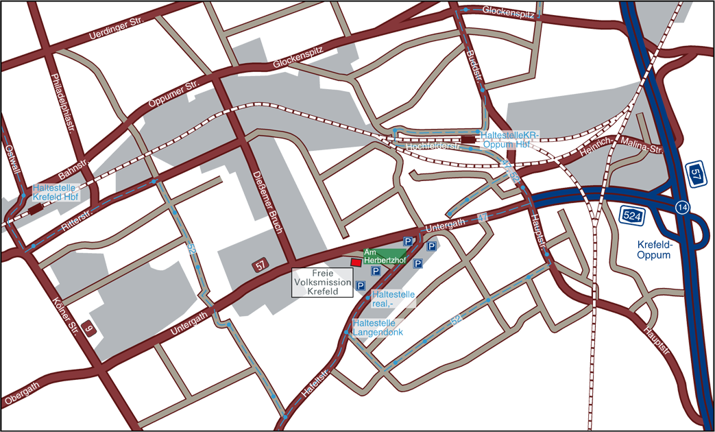 com o meio de transporte público a partir da estaςão ferroviária de Krefeld-Oppum: